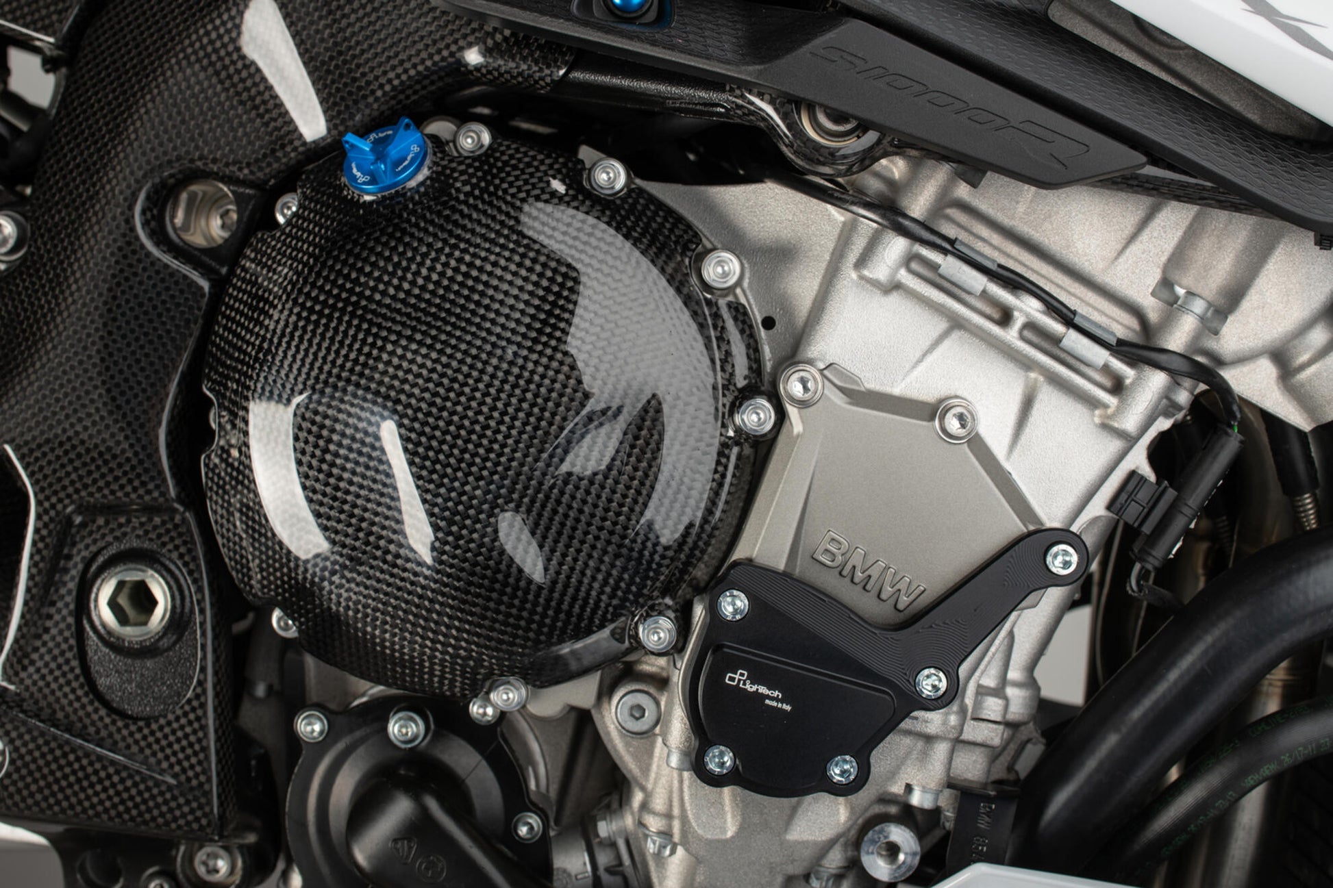 With the Lightech Carbon coupling cover, you not only give your BMW S1000RR an optical upgrade, but also additional protection for racing and street use.