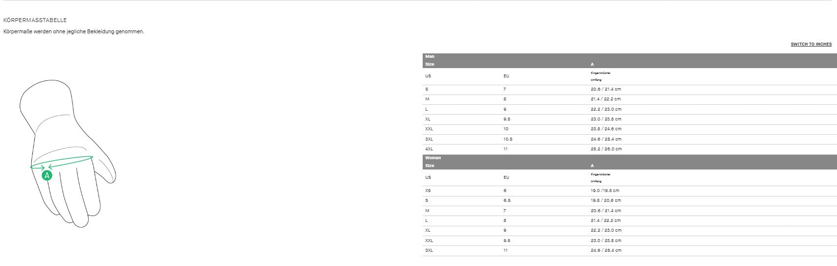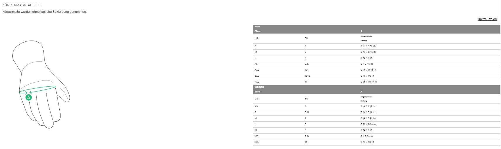 | US | EU | Knuckle Circumference |