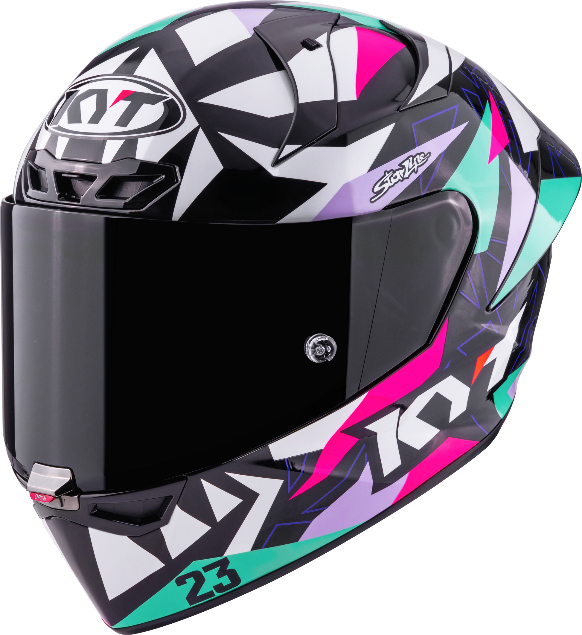 El casco KYT KX-1 Race GP Enea Bastianini Replica 2025 combina la máxima seguridad, la perfección aerodinámica y la tecnología de competición más avanzada. Con su homologación FIM, cumple con los estándares de competición más estrictos y ha sido desarrollado en estrecha colaboración con Enea Bastianini, para pilotos que exigen rendimiento y protección sin compromisos.